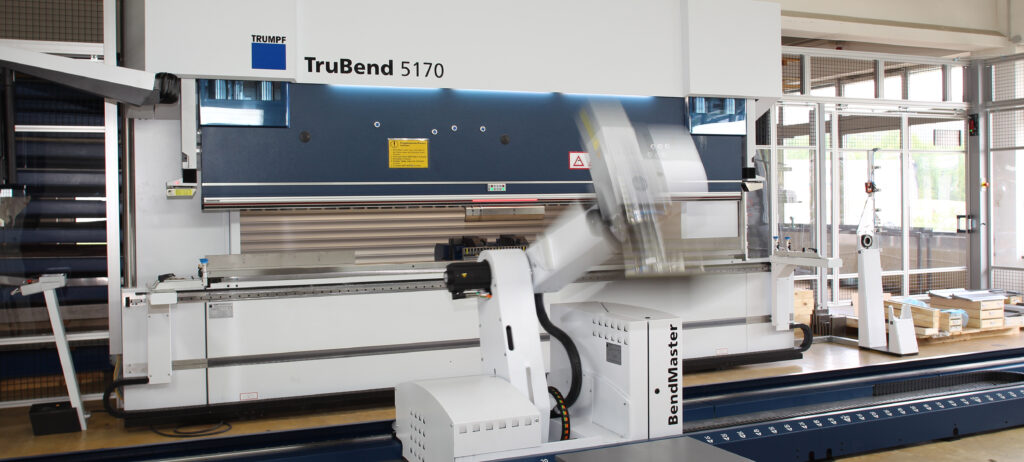Nicht nur beim Laserschneiden wird Druckluft benötigt, auch in vielen weiteren Prozesse wird sie gezielt eingesetzt. So ist z.B. das Materialhandling ohne Druckluft nicht mehr denkbar. In vergangenen Zeiten mussten Mitarbeiter unter großem Krafteinsatz und mit zusätzlichen Hilfsmitteln die teils schweren Bleche handeln. Dank modernster Technik gehört dies der Vergangenheit an. Mussten früher unzählige Tonnen Material mit Stapler und Kran händisch eingelagert werden, dient heute ein Großlagersystem als Materialspeicher. Dieses vollautomatische Lagersystem bietet nicht nur Platz für mehrere hundert Tonnen Blech, Fertigteile, Restgitter und Rohrprofile, es versorgt auch die Maschinen mit dem benötigten Material. Heute verfügen die Stanz- und Laser-Kombimaschinen über eine Vielzahl an Vakuumsauger, welche mittels Druckluft Bleche aufnehmen und diese zur Bearbeitung auf die Maschine legen. Fertigteile werden sortiert an einem vorbestimmten Entladepunkt abgelegt. Ein optimales Be- und Entladen der Maschinen ist also auch hier nur mit einer passenden Druckluftstation möglich.
