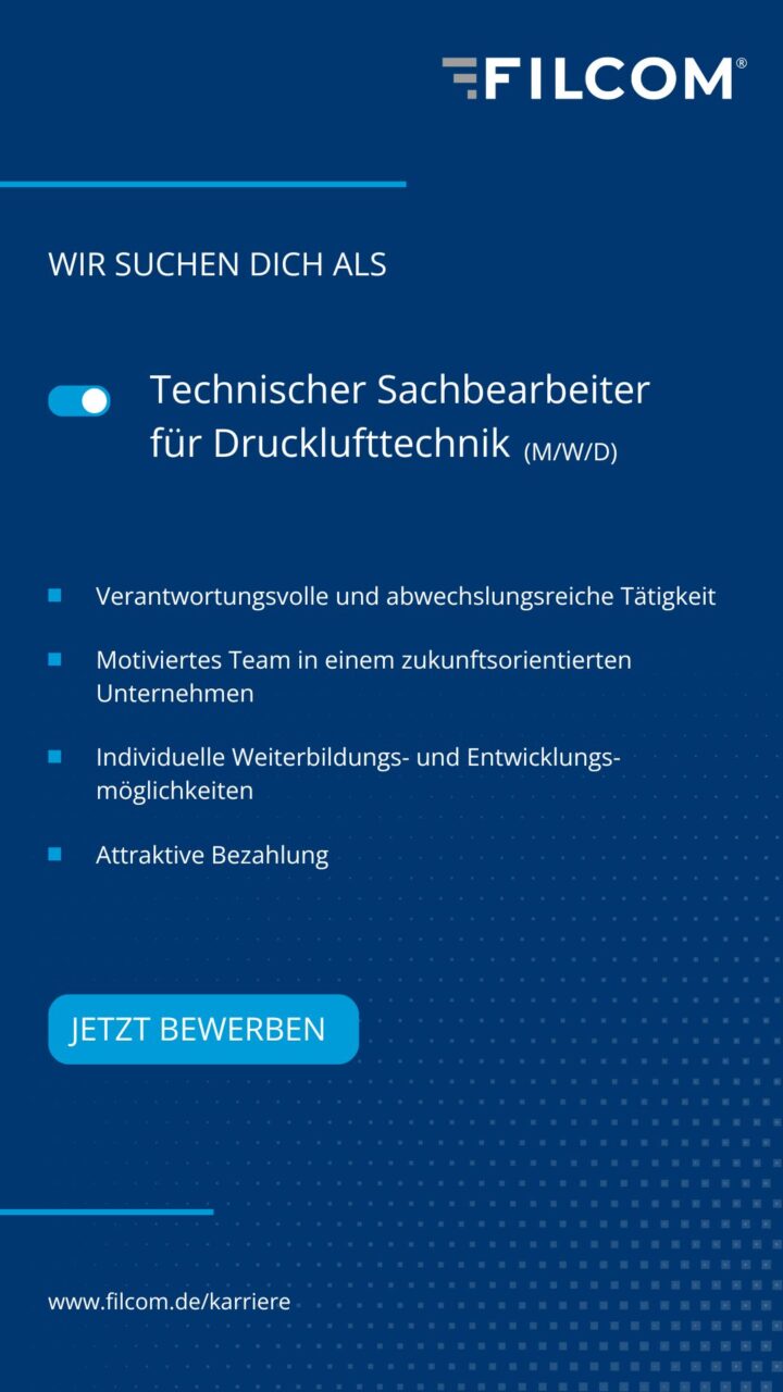 Die FILCOM GmbH wächst und sucht Verstärkung im Bereich der Drucklufttechnik!