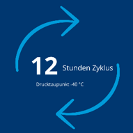 Die Erzielung von Drucktaupunkten unter 0 °C stellt generell eine herausfordernde Aufgabe dar. Aus diesem Grund setzen wir konsequent auf erstklassige Komponenten und eine großzügige Dimensionierung des Verfahrens. Auf diese Weise erreichen wir Spitzenwerte in Bezug auf Energieeffizienz.