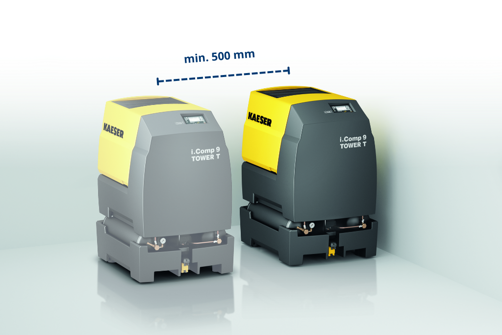 Mit dem i.Comp 8/9 Tower präsentiert KAESER eine hocheffiziente Komplettlösung, die einen Kolbenkompressor und eine Druckluftaufbereitung mit Kältetrockner sowie optionalen Filtern in einem robusten Gehäuse integriert. Diese vollwertige Druckluftstation basiert auf zwei Druckluftbehältern mit jeweils 40 Litern Fassungsvermögen.