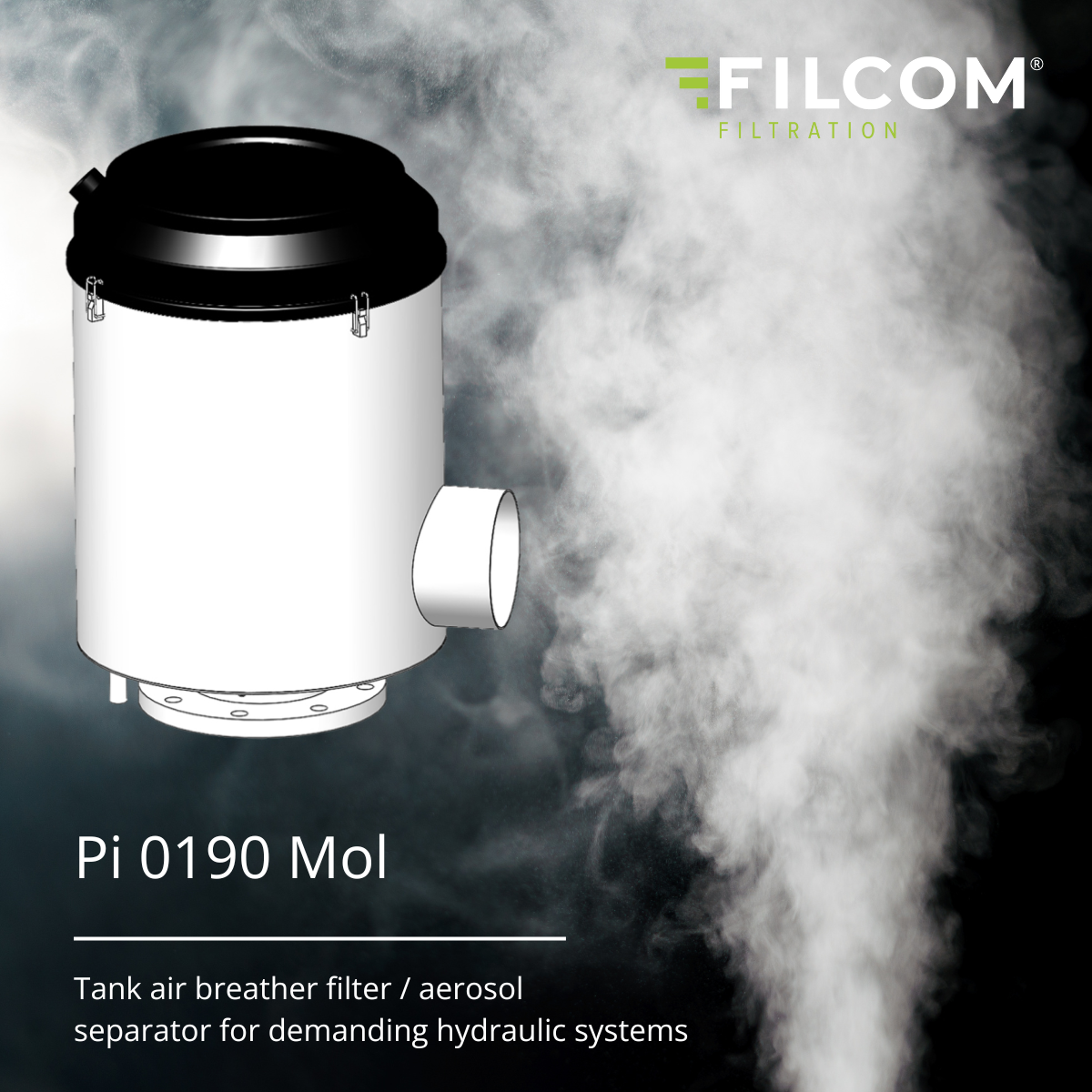 Safety and efficiency for your hydraulic systems. The Pi 0190 Mol tank vent ensures clean air and safe operation. Thanks to its powerful Mol filter elements, it removes up to 99.99% of particles from 1 µm and reduces the oil mist in the environment to a minimum – ideal for employee health and process safety!
