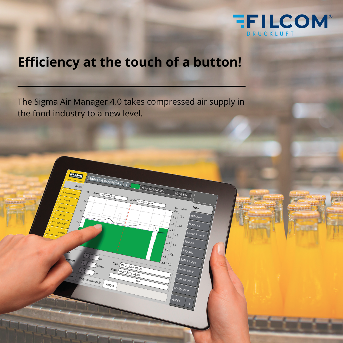 Documentation and cost transparency Compressed air management systems record consumption and cost data in accordance with ISO 50001 and visualize them on the web, without additional software. Systems such as the Sigma Air Manager 4.0 ensure needs-based control, precise maintenance and better cost transparency – this saves operating costs and increases operational reliability.