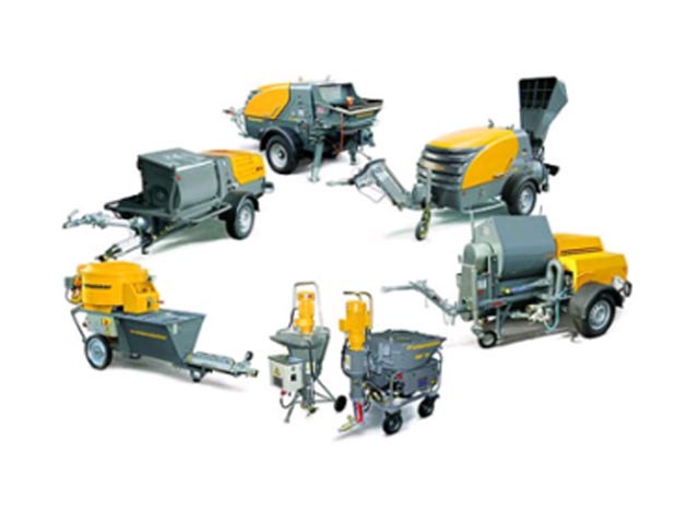 A concrete pump is used for conveying concrete. These pumps are used during the construction of buildings, bridges or barrages. Concrete with a particle size up to 63 millimeter can be pumped. Concrete pumps are normally double piston pumps, which are operated hydraulically by oil pumps with electric and diesel engines. The conveying pistons are connected hydraulically by drive cylinders and operate in a push-pull arrangement.