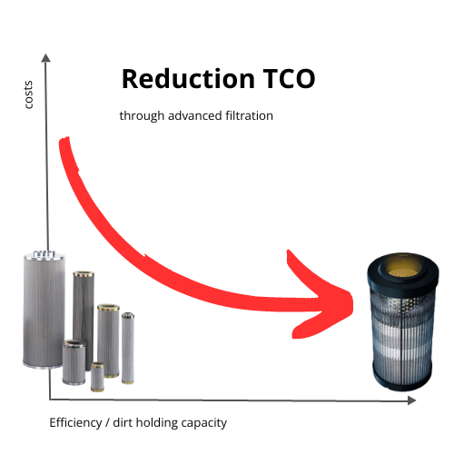The improved design of the new PURE POWER filter elements directly affects two important factors that influence the total cost of ownership of a hydraulic system – downtime and operating costs: